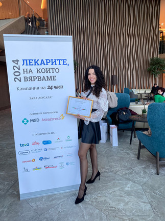 Today, on November 5, 2024, the official ceremony of the 14th edition of the "Doctors We Trust" league took place, where Dr. Milena Zaharieva was awarded the honorary certificate "Doctor Trusted by Bulgarians."